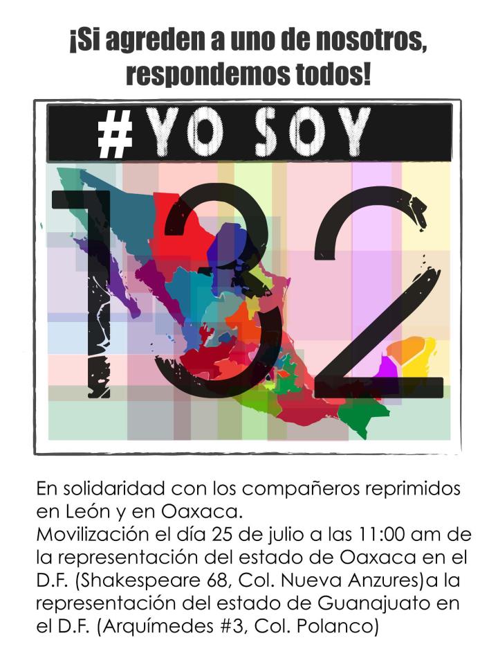 El mensaje oficial de la convocatoria dice que: “Las manifestaciones pacíficas que se realizaron el día Domingo 22 de Julio se vieron manchadas por las agresiones cometidas contra los compañeros de Oaxaca y León, Guanajuato. Ante los actos de represión que violentan los derechos humanos de libertad de expresión y el derecho de reunión nos manifestaremos. Denunciaremos, que se oiga fuerte y que se oiga lejos: