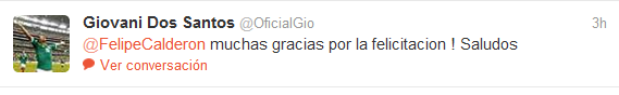 A través de twitter el presidente reiteró su felicitación, y jugadores como Giovani Dos Santos le devolvieron el gesto: