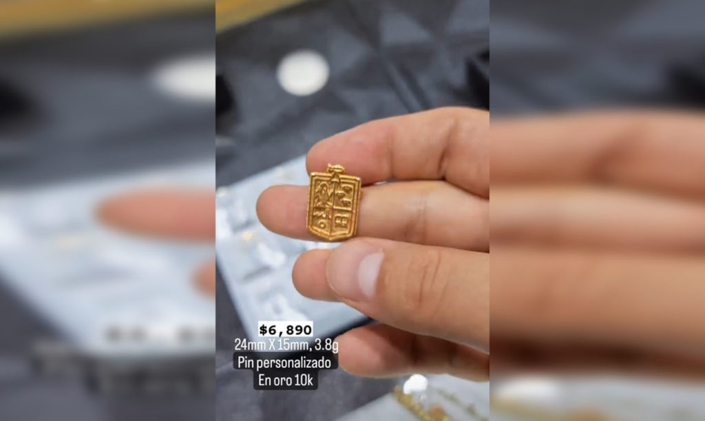 Se trata de un pin en oro de 10 kilates de tamaño 24mm x 15mm y cuyo precio es de 6 mil 890 pesos, según informa la propia joyería.