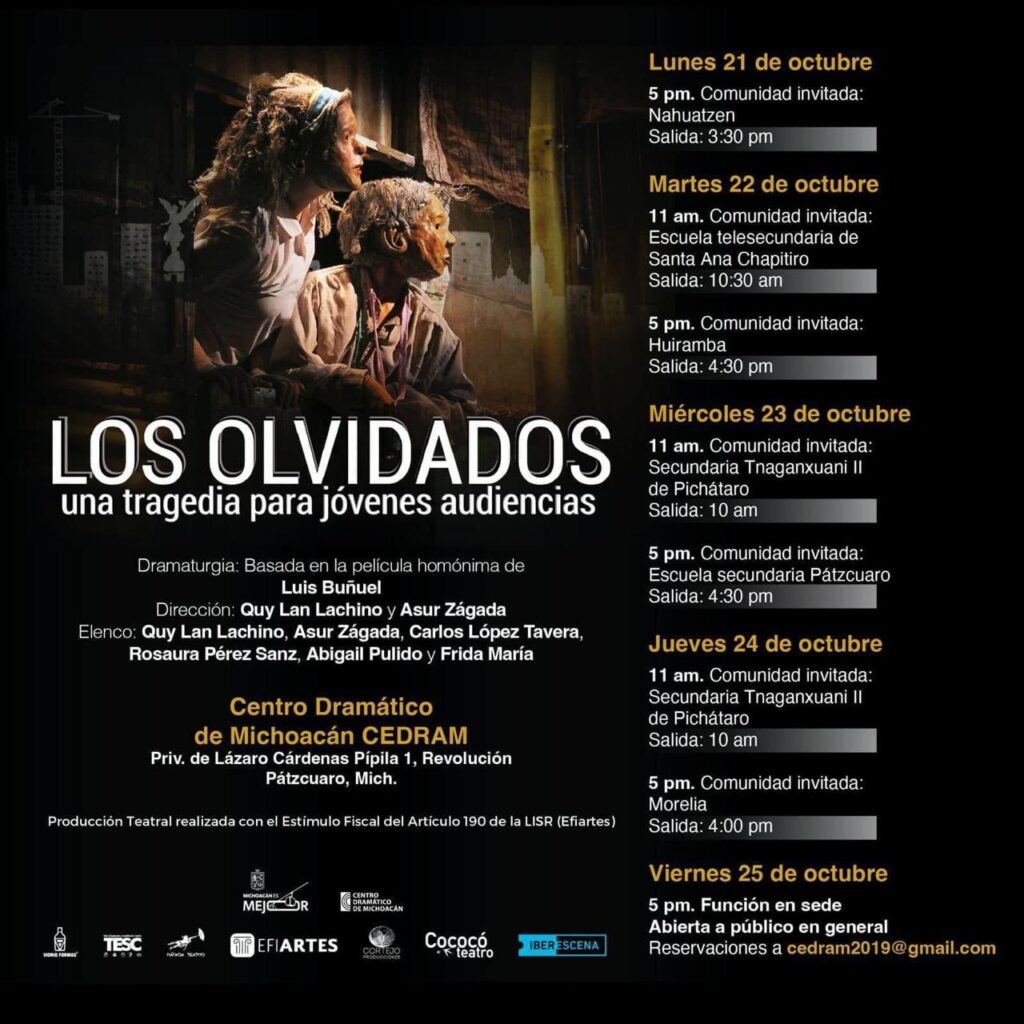 Niños y adolescentes de comunidades cercanas a Morelia disfrutarán, de manera gratuita, la obra de teatro Los Olvidados, Una Tragedia Para Jóvenes Audiencias, que se presenta en el Centro Dramático de Michoacán (CEDRAM), en Pátzcuaro.