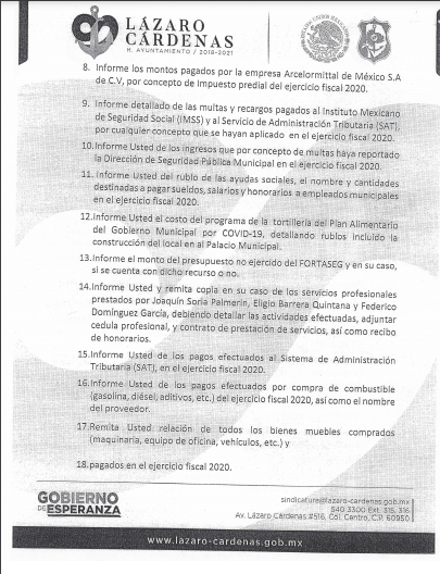 Tras la confirmación se ha pedido a la encargada de la contabilidad, Ángeles Berenice, que tras que se reprobó la cuenta pública anual 2020 y en condiciones de hacer el reporte a la Auditoria Superior de Michoacán y al Congreso del Estado debe presentar una aclaración de egresos por 27 conceptos, recibiendo como respuesta que convoque a una reunión con la comisión de hacienda.