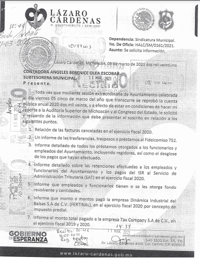 Cabe mencionar que el 5 de marzo se llevó a cabo una sesión ordinaria de Cabildo en donde el tercer punto del orden del día fue el análisis o aprobación en su caso de la cuenta pública anual 2020, la cual fue reprobada por 6 regidores y el síndico municipal por no haberse dado información completa como anexos de cuenta, incremento en gasto de presidencia y en rubro de apoyos sociales, y horas más tarde el tesorero presentó su renuncia.