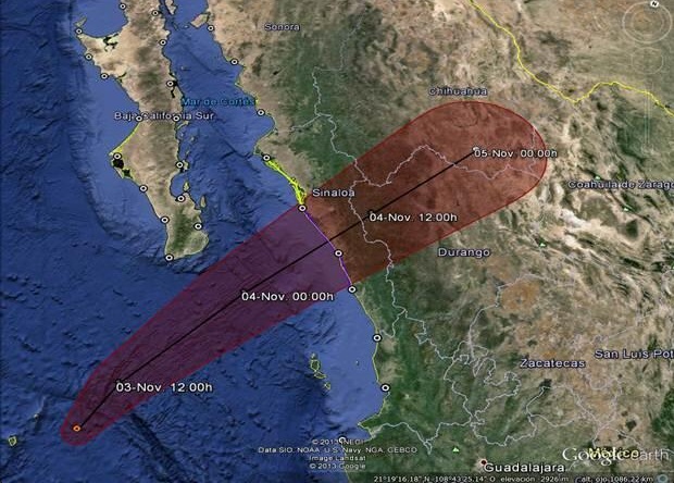 Por otro lado, la tormenta tropical ocasionará lluvias torrenciales además de Sinaloa, lluvias intensas en Chihuahua y Durango; muy fuertes en Baja California Sur, Nayarit y Sonora, y fuertes en Jalisco, Colima y Michoacán, así como oleaje con altura de dos a tres metros en las zonas costeras.