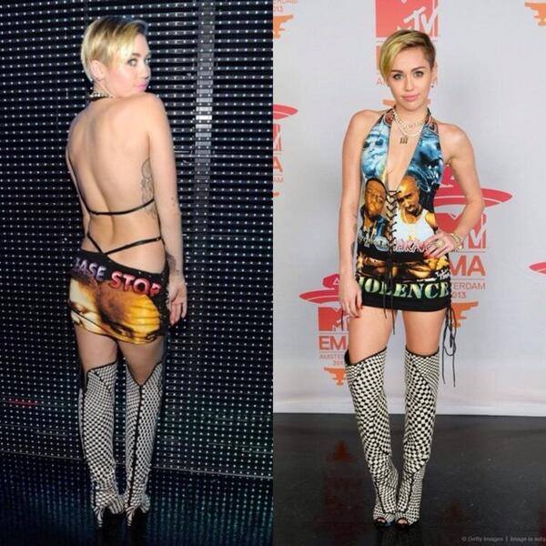 Durante la entrega de premios de MTV Europe Music Awards [EMA] en Amsterdam, Miley Cyrus se hizo acreedora al premio por mejor Video Musical por ‘Wrecking Ball’ , al final de su discurso de agradecimiento, busca en su bolso algo, saca el toque y le da un fumin. ¡Que atrevida!