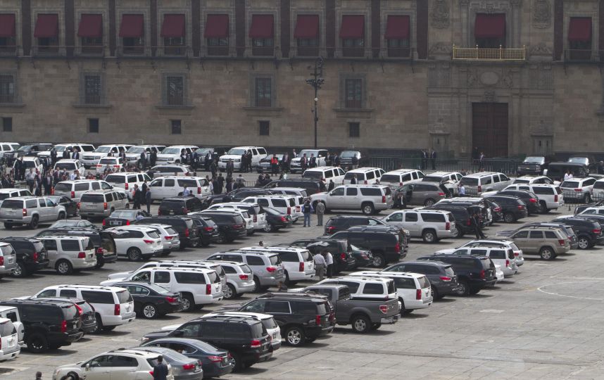 La cita fue a las 12:00 horas en Palacio Nacional, sin embargo decenas de funcionarios arribaron a la Plaza de la Constitución desde más de media hora antes para estacionar ahí sus vehículos oficiales y personales con la autorización del gobierno federal y de Miguel Ángel Mancera.