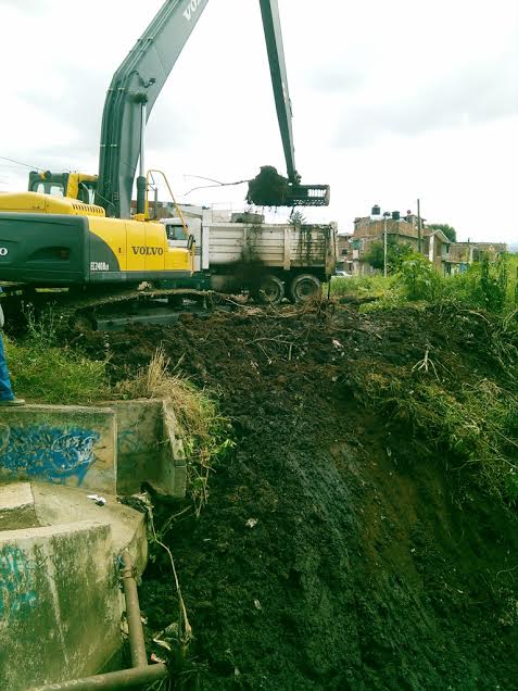El Ayuntamiento de Morelia, a través del Organismo Operador de Agua Potable, Alcantarillado y Saneamiento (OOAPAS), efectúa una segunda etapa de desazolve en el Río Chiquito y drenes de la ciudad, con el apoyo de dos máquinas tipo draga de brazo largo, proporcionadas por la Comisión Nacional del Agua (Conagua).