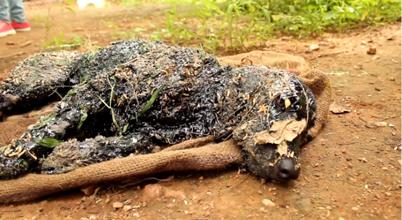 Un perrito de la calle en la India, cayó en una sustancia pegajosa, que tras secarse, formó una capa sólida sobre el pelaje del animal, por tal motivo un equipo de activistas rescataron el pobre peludo que quedó petrificado.