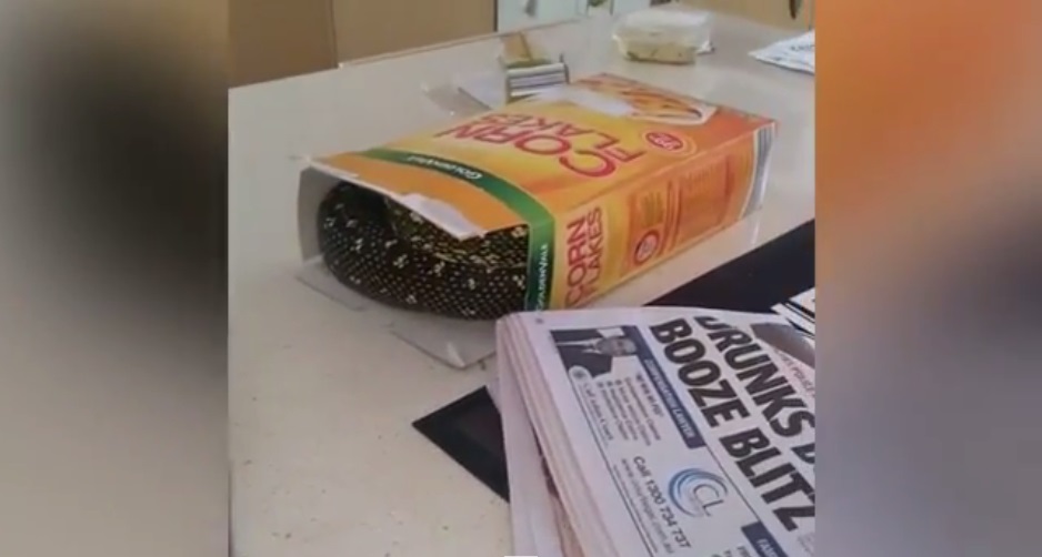 #VIDEO ¡WTF! Encuentra A Una Pitón De 2 Metros En Una Caja De Cereal