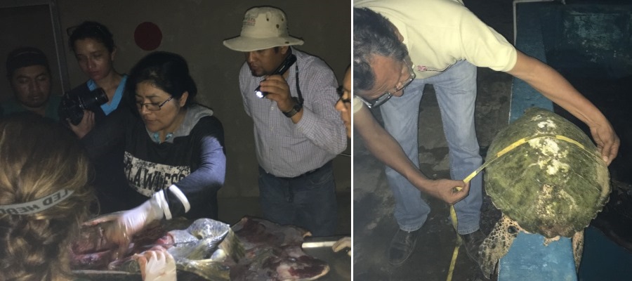 En el Santuario La Escobilla se recolectaron restos útiles de ejemplares de tortuga para realizar un diagnóstico; se tomaron muestras de sangre de una tortuga prieta macho sobreviviente que se encontraba resguardada en las instalaciones del Centro Mexicano de la Tortuga.