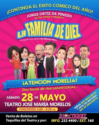 Regresa la serie de televisión ‘ Una familia de diez’ creada por Televisa, misma que fue lanzada en al año 2007 con Jorge Ortíz de Pinedo, quien es el director y productor general e interpreta a Plácido López, el padre de la familia, al Teatro ‘José María Morelos’ de la capital michoacana en dos funciones, el 28 de mayo.
