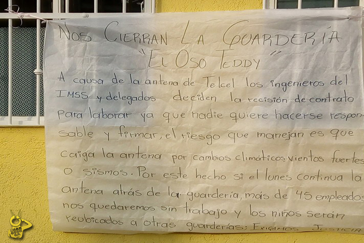 #Denúnciamesta: Más fácil cerrar guardería que mover antena de Telcel, 180 niños en riesgo