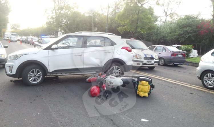 Un motociclista resultó levemente lesionado al colisionar contra el costado izquierdo de una camioneta sobre la Avenida Madero Poniente, en la ciudad de Morelia.