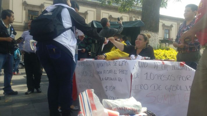 A partir de este miércoles militantes del Partido del Trabajo (PT) recaban firmas en la plaza Ocampo del primer cuadro de la capital michoacana para protestar en contra del aumento a combustibles, el llamado “gasolinazo”.