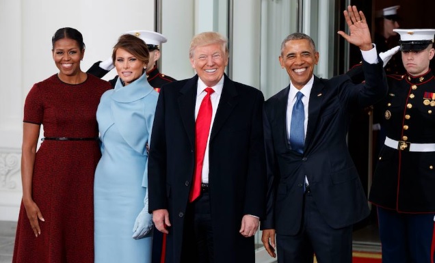 Según lo dicta el protocolo estadounidense, Trump y su esposa Melania iniciaron su jornada en la Iglesia Episcopal de San Juan, para después reunirse con su antecesor Barack Obama y la primera dama Michelle Obama en la Casa Blanca para juntos ir a la ceremonia de juramentación en el Capitolio.