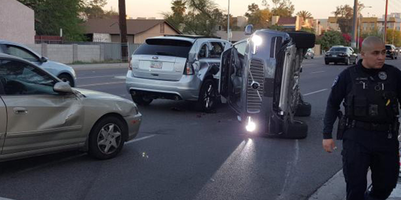 El accidente ocurrió cuando un conductor de un segundo vehículo «no cedió el paso» al automóviles de Uber al realizar un viraje, dijo Josie Montenegro, portavoz del Departamento de Policía de Tempe.
