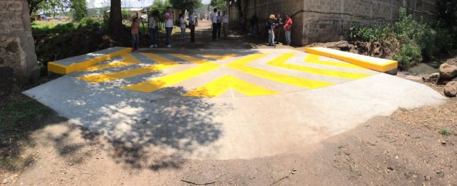 Finalmente el presidente municipal, el jefe de tenencia, amas de casa y maestros de albañilería, fueron los que cortaron el tradicional listón para inaugurar el puente de acceso escolar y ejidal.