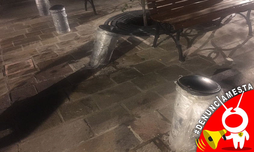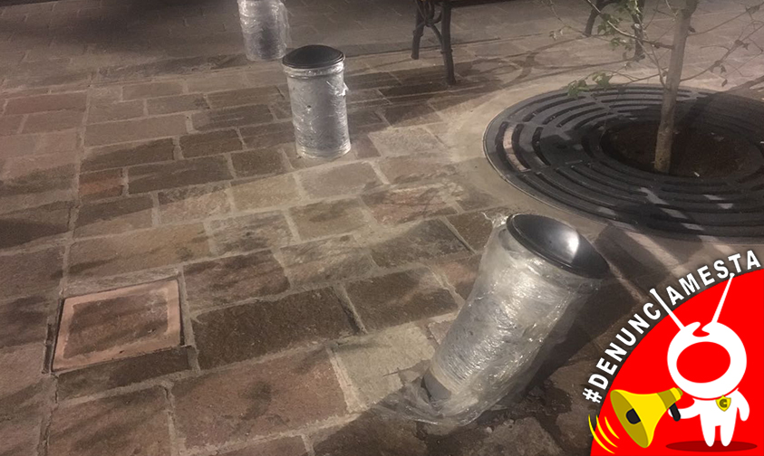 #Denúnciamesta!: Postes de la calle Zaragoza del reciente proyecto de peatonalización del centro histórico ya están dañados.