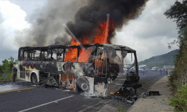Al menos cuatro hombres, armados con rifles AK-47 interceptaron un autobús que cubría eventualmente la ruta Chilpancingo-Chilapa en el nuevo libramiento, sometieron al chofer y los pasajeros, les despojaron de dinero y pertenencias para luego incendiar la unidad, lo mismo hicieron con una camioneta distribuidora de Marinela en la antigua carretera federal, a la altura del cerro del Machohua.