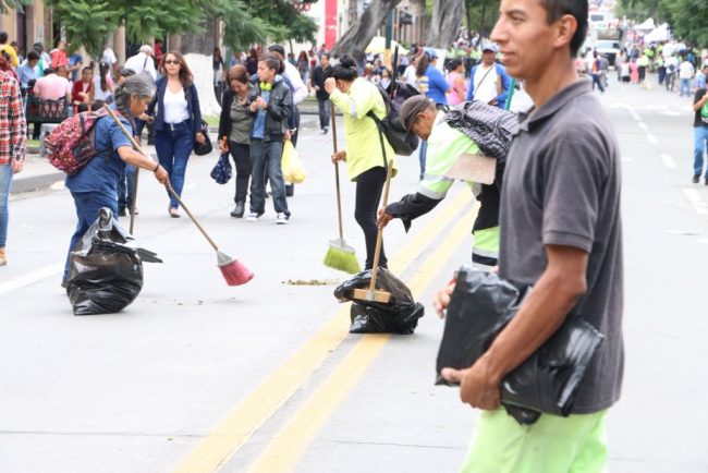Cuadrillas de más de 40 personas pertenecientes a la dirección de Residuos Sólidos del Ayuntamiento iniciaron la labor de limpieza al finalizar el evento de 30 de septiembre.