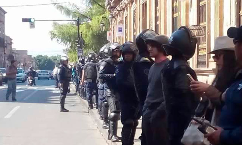 Agremiados pertenecientes al Sindicato Único de Empleados de la Universidad Michoacana (SUEUM), fueron desalojados este medio día del plantón que prevaleció desde el pasado 19 de diciembre en la Avenida Madero, justo frente al Colegio Primitivo de San Nicolás de Hidalgo.