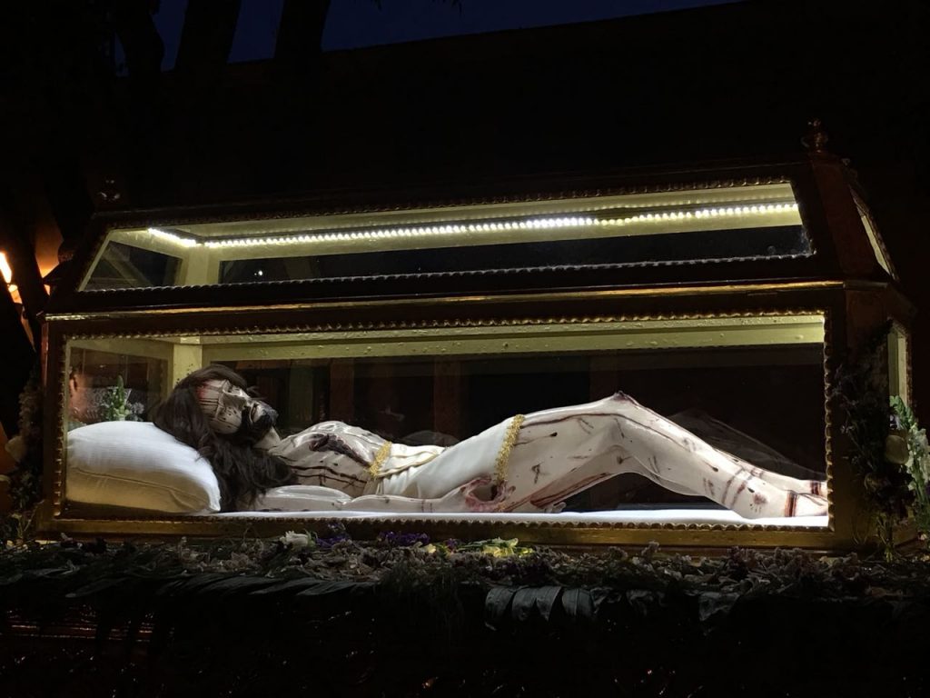 Tal vez con conocimiento de causa ante la disminución del fervor religioso, a su llegada a la Catedral, el Arzobispo Carlos Garfías, suplicó a la Mater Dolorosa, la máxima figura del duelo católico en esta Procesión fúnebre, la recipiente de las condolencias ante la muerte de su hijo en la cruz, que les mostrará a su fieles la fatiga y el desconsuelo por el que su amado vástago había muerto, para con ello, rescatar la fe de los creyentes y convertir así a los incrédulos.