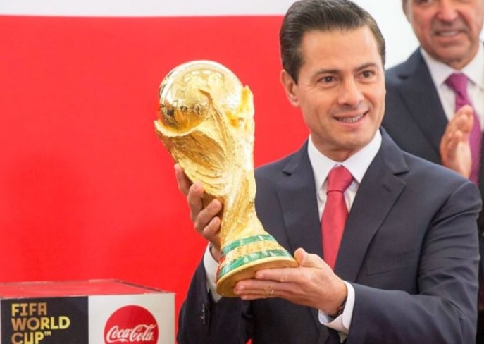 El presidente Enrique Peña Nieto recibió en la residencia oficial de Los Pinos a la Copa del Mundo, como parte de una gira que realiza el trofeo en el país. El mandatario afirmó que miles de mexicanos apoyarán desde lejos a la selección nacional en el Mundial de Rusia 2018 para que «regrese al país como campeones».