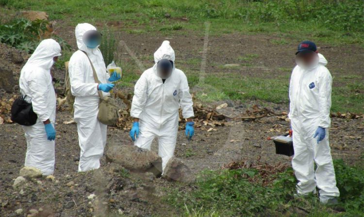 El personal de la Unidad Especializa en la Escena del Crimen se trasladó a la carretera Apatzingán- Cuatro Caminos y en la zona de San Antonio La Labor fueron localizados los difuntos.