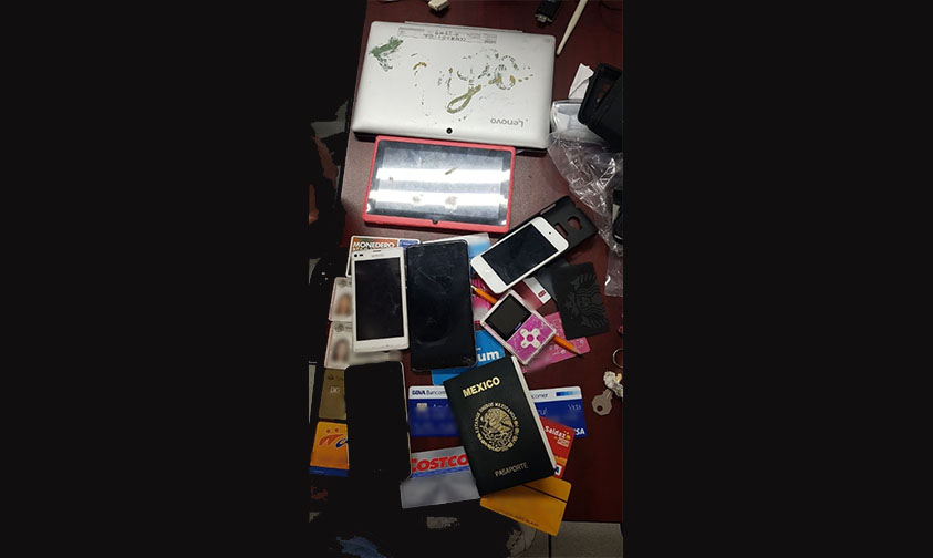 Al entrevistarse con esta mujer y hacer la revisión correspondiente, en una mochila y una bolsa de mano se le encontraron varios bienes, de los cuales no pudo comprobar su procedencia, tales como una tableta electrónica y cuatro celulares.