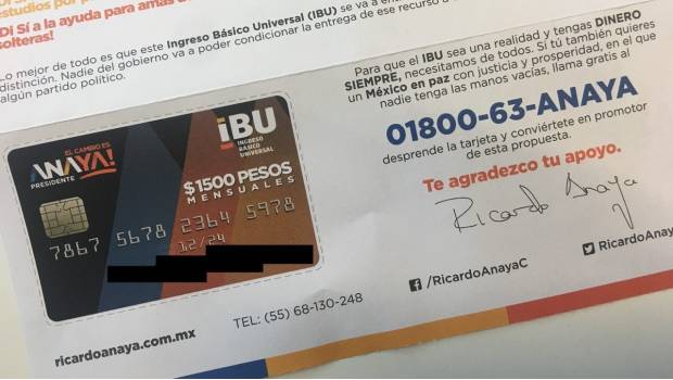 La entrega de tarjetas IBU de Ricardo Anaya, candidato de la coalición ‘Por México al Frente’, puede continuar como parte de su estrategia de repartir plásticos con la promesa de pagar a cada mexicano 1,500 pesos mensuales si gana la elección.