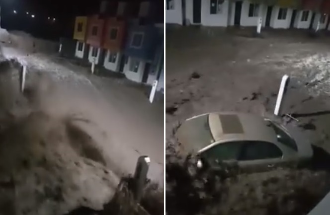 El reporte más alarmante es en Ex Hacienda del Quinceo y Vistas del Quinceo donde reportan a dos policías atrapados entre la corriente del agua y más de 6 autos volteados por el torrente.