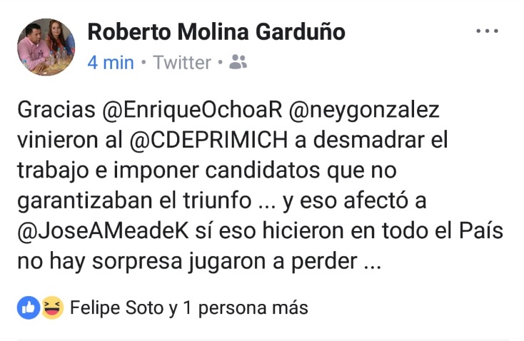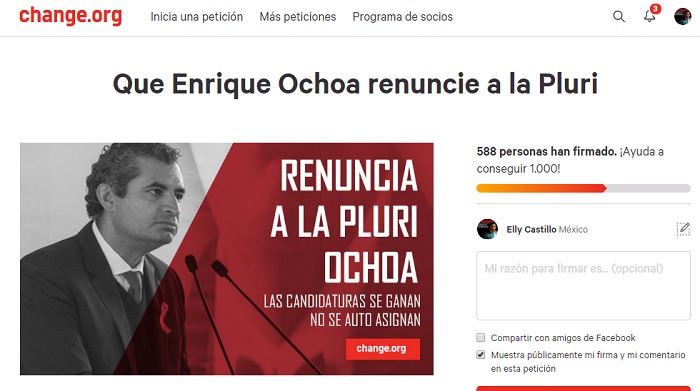 Al tiempo que a nivel nacional se ha lanzado una petición en el sitio Change.org para exigir que Ochoa Reza decline asumir su curul en San Lázaro, voces michoacanas como la del empresario hotelero Roberto Molina o el exdirigente juvenil Guillermo Valencia se suman al coro ya que acusan tanto a Ney González como a Enrique Ochoa de desbaratar al partido, de “desmadrarlo” al repartir las candidaturas entre amigos y compadrazgos dejando de lado a cuadros y militancia de trayectoria probada, con un desdén que propició una fractura interna.