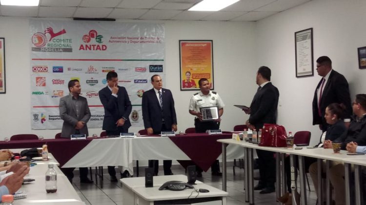 Con la finalidad de distinguir las labores que diariamente realiza la Policía de Morelia en favor de la sociedad, directivos de la Asociación Nacional de Tiendas de Autoservicio y Departamentales A.C (ANTAD) Comité Morelia, entregaron la mañana de este lunes un reconocimiento a la corporación de seguridad municipal, que en esta ocasión estuvo representada por el Comandante y Director de Proximidad, Abraham Ramos Ramos.