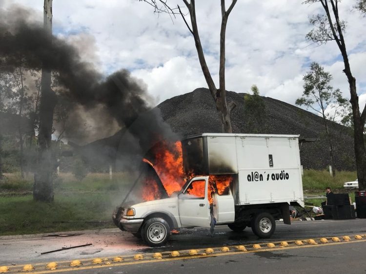 Una camioneta de una empresa de sonido para eventos se incendió aparentemente debido a una falla mecánica, el suceso fue la tarde de este domingo en la carretera Morelia-Quiroga en este municipio.