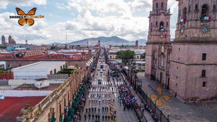 En punto de las diez horas con 51 minutos de este domingo, dio inicio el tradicional Desfile Cívico Militar conmemorativo del 208 Aniversario de la Independencia de México, que hicieron suyos miles de michoacanos y michoacanas de todas las edades, quienes se dieron cita al primer cuadro de la capital del estado.