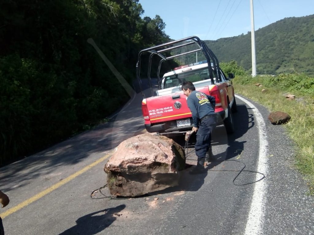 Una roca de gran tamaño se desprendió de una pendiente y cayó sobre la carretera Zitácuaro-Tuzantla, donde bloqueó uno de los dos carriles. Afortunadamente los vehículos que en ese instante transitaban por el lugar no resultaron dañados, luego los elementos de Bomberos Zitácuaro acudieron al sitio para retirar el pesado objeto.