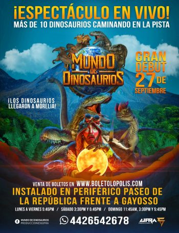 Llega a la capital michoacana, un nuevo show que dejará a todos impresionados, el espectáculo más grande de dinosaurios, estará ubicado en el periférico frente al Panteón Gayosso.