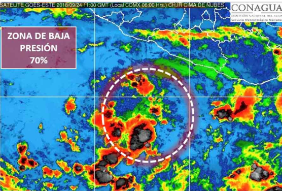 La Comisión Nacional de Agua, ha informado que una zona de baja presión con 70 por ciento de potencial para desarrollo ciclónico en 48 horas, se encuentra al sur de las costas de Michoacán y Guerrero.