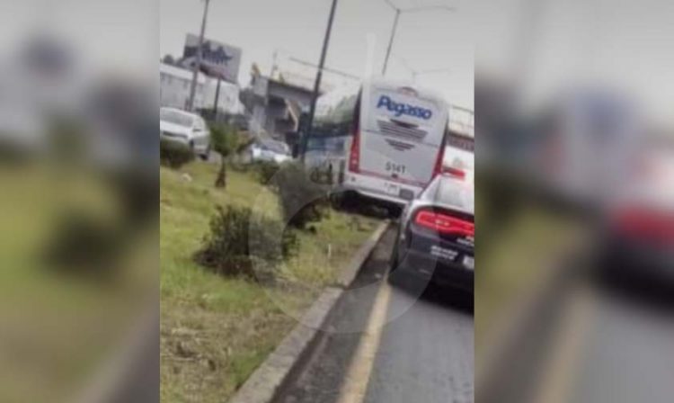 El autobús pertenece a la empresa “Pegasso”, en el lugar comenzó a hacerse lento el flujo vehicular por lo que tuvieron que presentarse elementos de policía y tránsito.