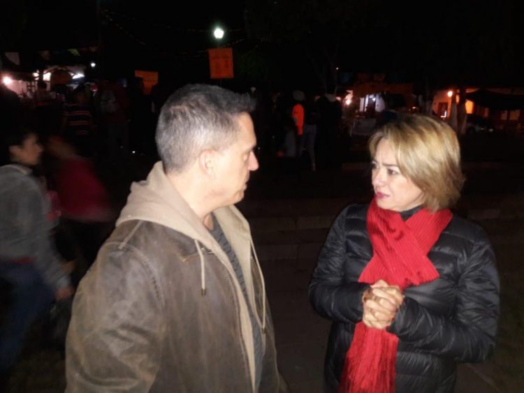Lee Unkrich, director de la película “Coco”, y la secretaria de Turismo, Claudia Chávez López, dialogaron este jueves en la comunidad de Santa Fe de la Laguna, que pertenece al municipio de Quiroga.