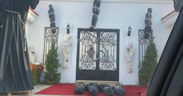 Una casa fue adornada con siete embolsados negros, dos tipos momias y lo que parece ser dos figuras de la Santa muerte, esto en un fraccionamiento en Mazatlán, Sinaloa.