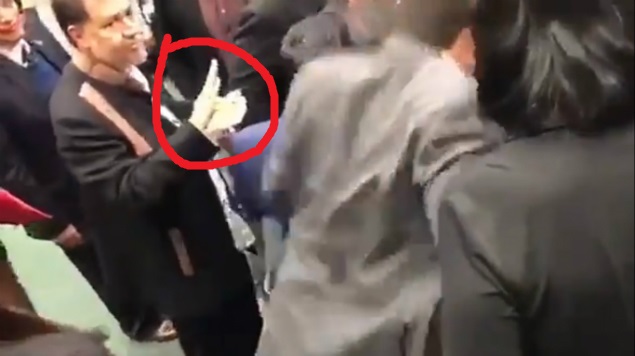 Ante esto, diputados de Morena empezaron a forcejear para quitar el “regalo”, desatando una batalla campal en donde Fernández Noñora atendió a la causa, pero sin dejar vulnerable a su taquito.