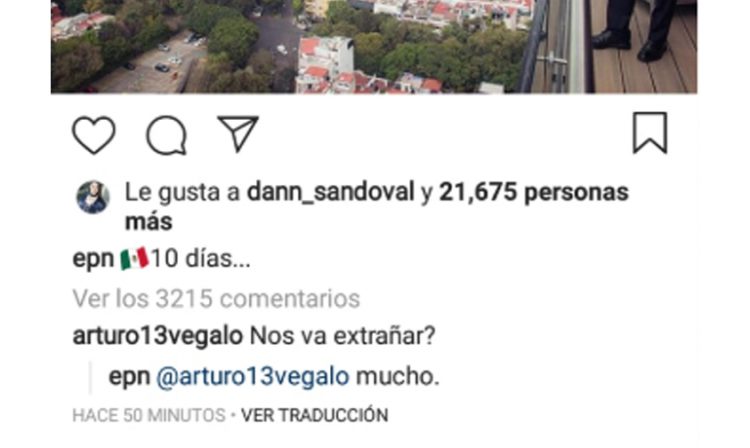 En el mensaje, un usuario les pregunta: “Nos va a extrañar?” (sic), a lo que Peña Nieto responde: “Mucho”.