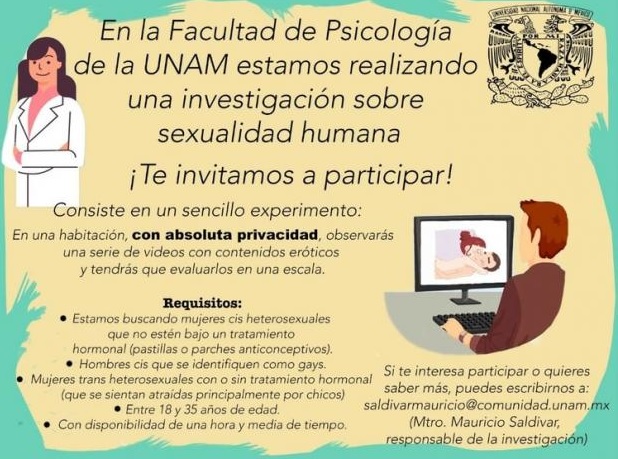 Por no tener algo mejor qué hacer: La Facultad de Psicología de la Universidad Nacional Autónoma de México (UNAM) anda buscando voluntarias y voluntarios para hacer un estudio.