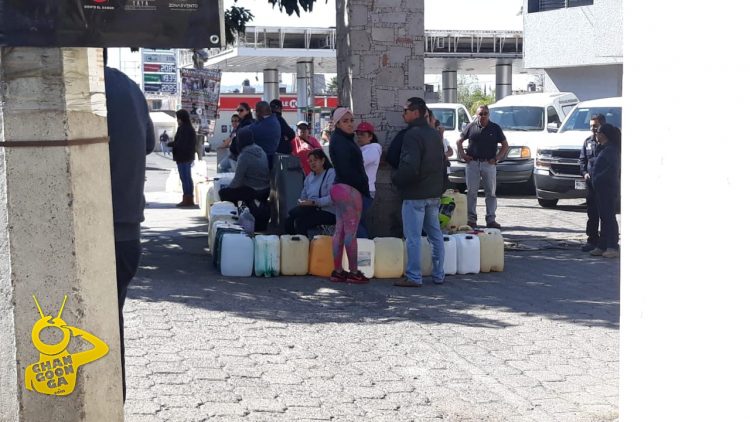En la estación de gasolina que se encuentra en las cercanías de salida Pátzcuaro se puede observar un sinfín de gente que hacen fila de coches, motos y personas sobre el libramiento hasta las inmediaciones de una empresa refresquera, quienes desesperados están a la espera de poder rellenar sus garrafas con combustible.