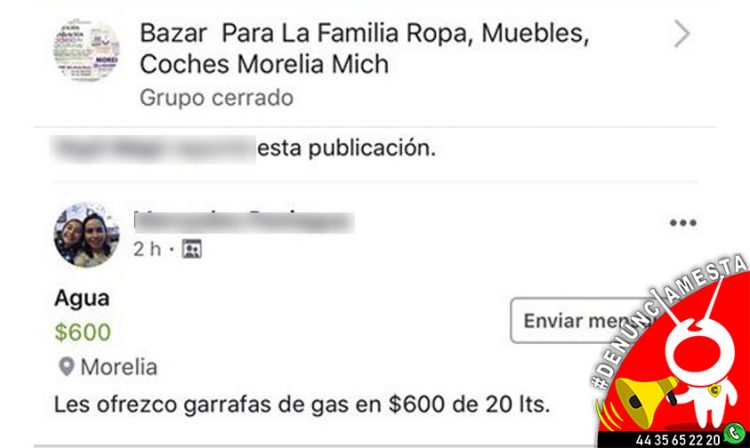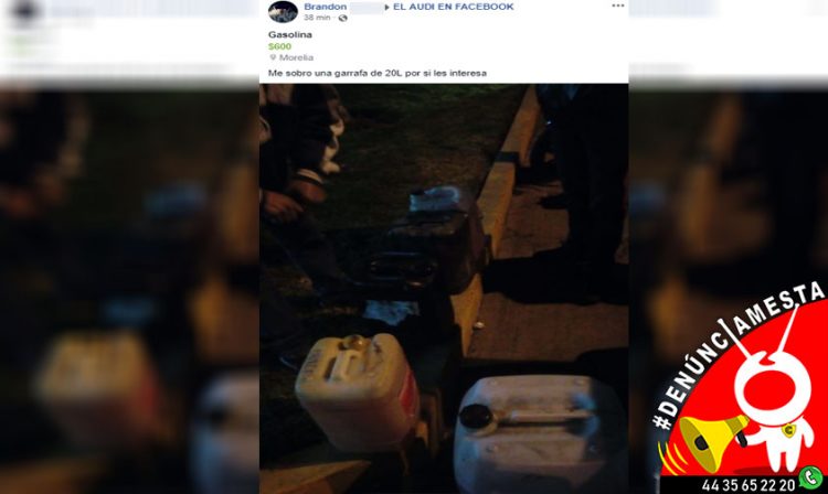 #Denúnciamesta: Morelianos venden garrafas de 20 litros con gasolina en grupos de Facebook
