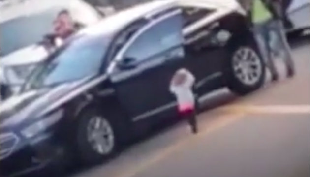 La grabación, tomada por un testigo, muestra a la pequeña bajando descalza del automóvil, donde viajaba su familia, con las manos en alto, justo como sus padres lo hicieron cuando fueron detenidos por elementos policiacos, por presuntamente haber asaltado una tienda con arma de fuego.