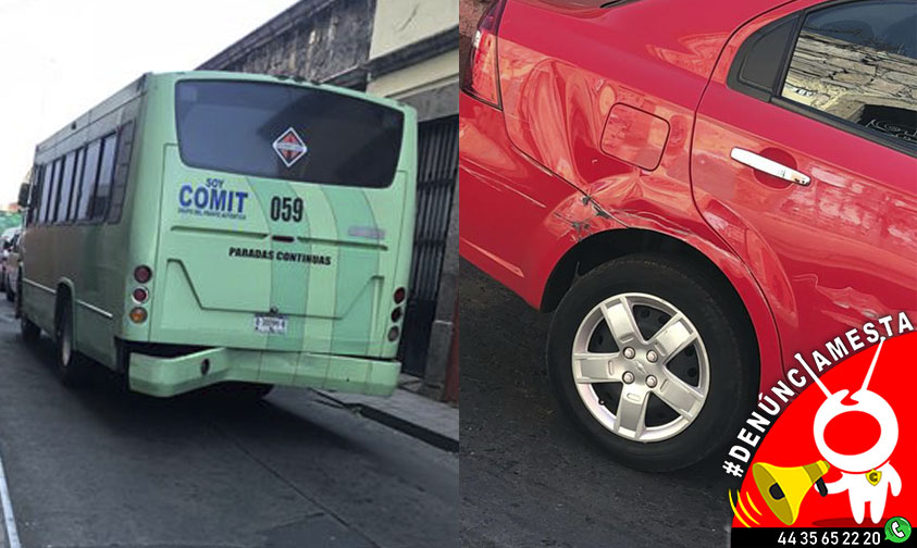 Tras el golpe, el chofer de la unidad no se bajó ni se detuvo siguió como si nada.