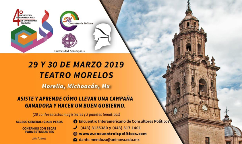 Se llevará a cabo el Cuarto Encuentro Interamericano de Consultores Políticos en el Teatro Morelos de la ciudad los días 29 y 30 de Marzo.