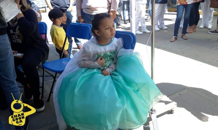 Perla Peñalosa, es una niña de 7 años, originaria de Apatzingán, tiene leucemia, que le fue diagnosticada en 2016, y en palabras de su padre «es muy difícil trasladarse cada rato (…) ahora está internada por su quimioterapia», le preguntamos a la pequeña como se encontraba y nos respondió «bien», sonriendo e iluminándose sus ojos verdes, lo que más le gusta hacer es «jugar con mis hermanas, somos cuatro conmigo» comentó la pequeña, quien portaba un vestido de la princesa Elsa, su personaje favorito.