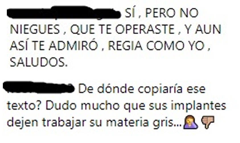 Además, diversos usuarios criticaron los supuestos implantes que posee la presentadora y cuestionaron el origen del texto sobre la disciplina que Yanet decidió compartir en sus redes sociales.